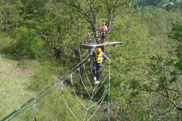 Il parco avventura del lago di Fiastra è un percorso costituito da diversi passaggi sospesi sopra gli alberi come il ponte scimmie, il ponte tibetano, alcune teleferiche e dalla teleferica che attraversa il lago lunga 130 metri.